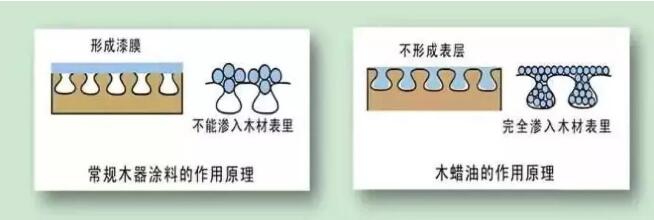木蠟油為滲透型涂料,不會(huì)形成涂膜。它深入木材,在木材的表面上形成開放的毛孔,能與木材同步伸縮。耐候性優(yōu)良
